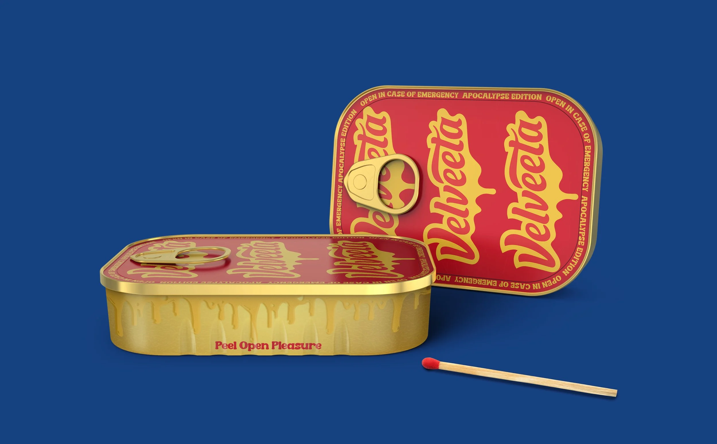 Rather than facing climate change alone, Velveeta offers a comforting alternative for these uncertain times: their shelf-stable, gooey cheese. Now available in an airtight, heat proof, resealable metal can with a 50-year shelf life, Velveeta ensures that even in the darkest circumstances, you can still enjoy a touch of pleasure.